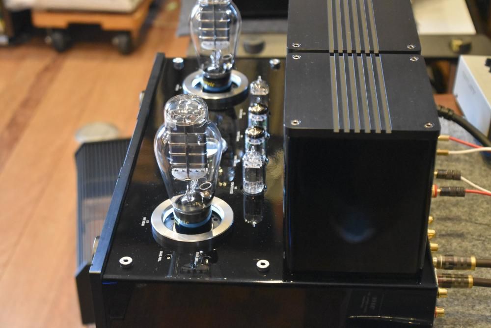 HA級シングル 使用真空管300B×2、12AX7×2、12AU7×1 定格出力12W+12W(8Ω)W440×H235×D330mm 29kg
